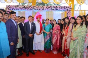 उपमुख्यमंत्री अजितदादा पवार यांच्या समवेत सुनेत्राताई पवार मौजे चाकण–आंबेठाण (ता. खेड) येथील रांका ज्वेलर्सच्या पंधराव्या दालनाच्या उद्घाटन समारंभास उपस्थित राहिले.