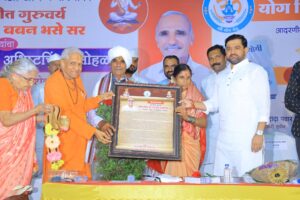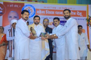 यावेळी आमदार सुनील शेळके,श्री गुरुवर्य विश्वासजी मंडलिक (कुलगुरु, योगविद्या गुरुकुल, नाशिक), डॉ. सदानंदजी मोरे सर ( अध्यक्ष, साहित्य व संस्कृती मंडळ, महाराष्ट्र राज्य), डॉ. रमेशजी पांडव (अध्यक्ष, योग गुरुकुल, नाशिक), ह. भ. प. जालिंदर महाराज मोरे (अध्यक्ष, देहू देवस्थान), सौ. पौर्णिमाताई मंडलिक, ह. भ. प. सचिनदादा पवार तसेच देहू संस्थानचे विश्वस्त इत्यादी मान्यवर उपस्थित होते.
