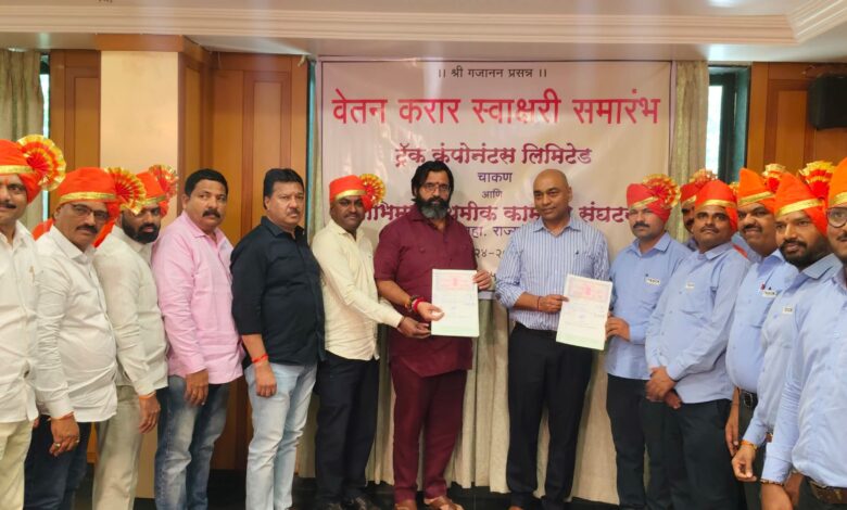 चाकण औद्योगिक वसाहती मधील ट्रॅक कॉम्पोनंट लि.व स्वाभिमानी श्रमिक कामगार संघटना यांच्यात औद्योगिक क्षेत्रातील सर्वात मोठा वेतनवाढ करार..!