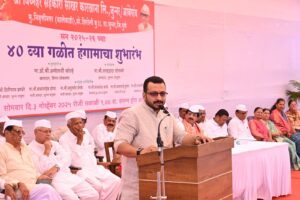 यावेळी उपस्थित सभासद, शेतकऱ्यांशी सत्यशील शेरकर यांनी संवाद साधला. नोव्हेंबर महिन्यातही पाऊस चालू आहे. हवामान बदल, अवकाळी पाऊस, इतर पिकातील उत्पादन खर्च वाढ यांसारख्या अनेक आव्हानांना आपला बळीराजा सामोरे जात आहे. अवकाळी पावसाने इतर पिकांचे नुकसान झाले असून उत्पादन आणि उत्पन्न यासाठी एकमेव ऊसाचे पीक आहे.
